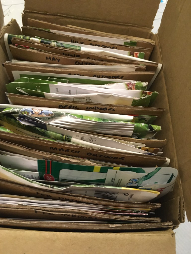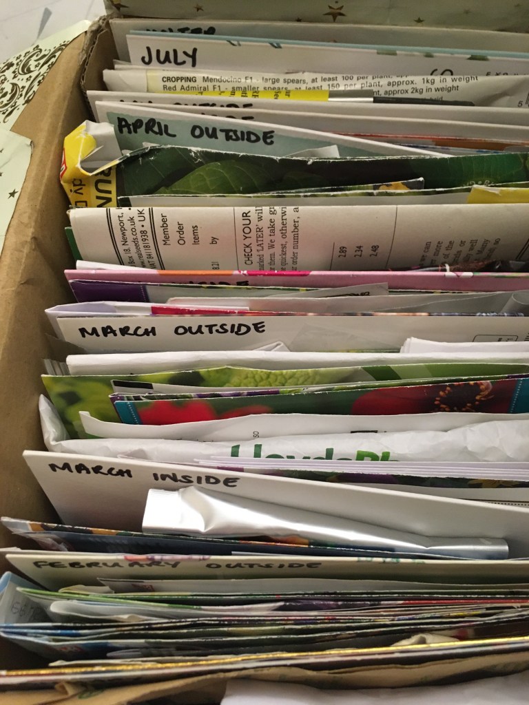 The number of seeds is overwhelming and through the year I find myself getting annoyed at trying to find things and forgetting to plant things. I’ve stored seeds in different labelled envelopes and jiffy bags, trying to keep my sanity. In addition, I have a large seed collection for the school edible garden that I look after too.