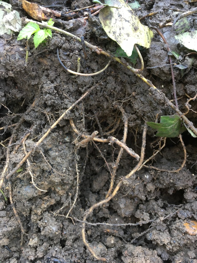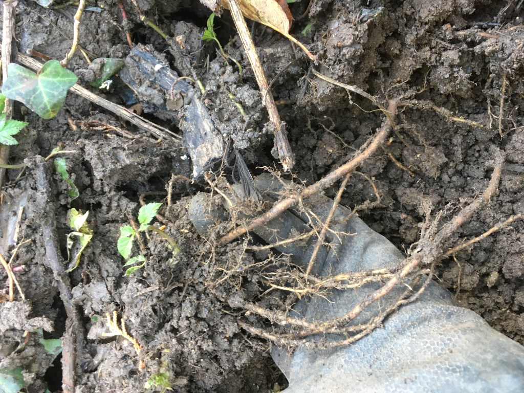 I have also removed them (fingers crossed) from a garden I have been working in. Hiding under the creeping ivy was a ground elder patch about 4 m x 5 m with an extensive underground network. The only way to remove it was to dig down about 20 cm deep in this whole area and sift through the soil (literally with a sieve) to make sure that all the roots were removed. The roots are brittle, so they snap easily and it’s easy to leave bits behind (this is where I was going wrong as a kid). Luckily, they are a lovely bright white colour and often are not covered in lots of root hairs, so they do pull out of the soil nice and easily if you take the time to find them. You must remove every last bit of root if you want to see the back of them. This is why they are so difficult to get rid of and often how they first appear in a garden. It could be something as simple as a bit of root hidden within the roots of a potted plant you’re putting in the ground. It could make its way to your garden through underground runners from a neighbouring garden or land nearby.