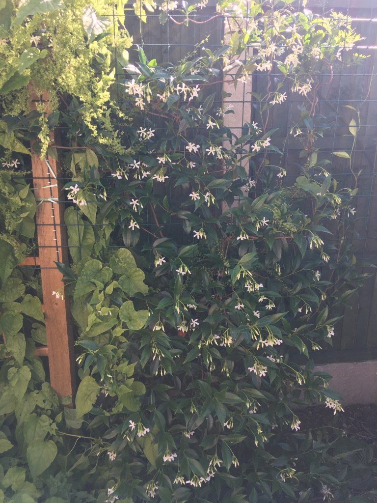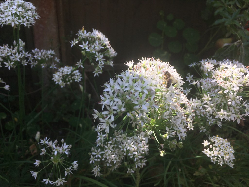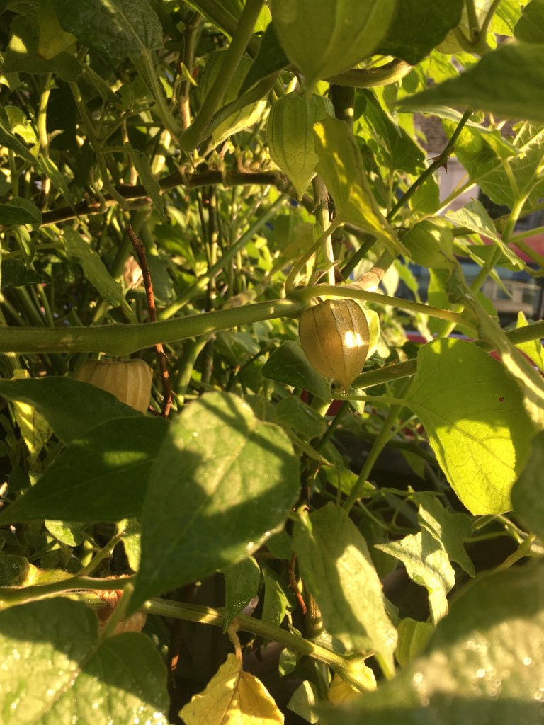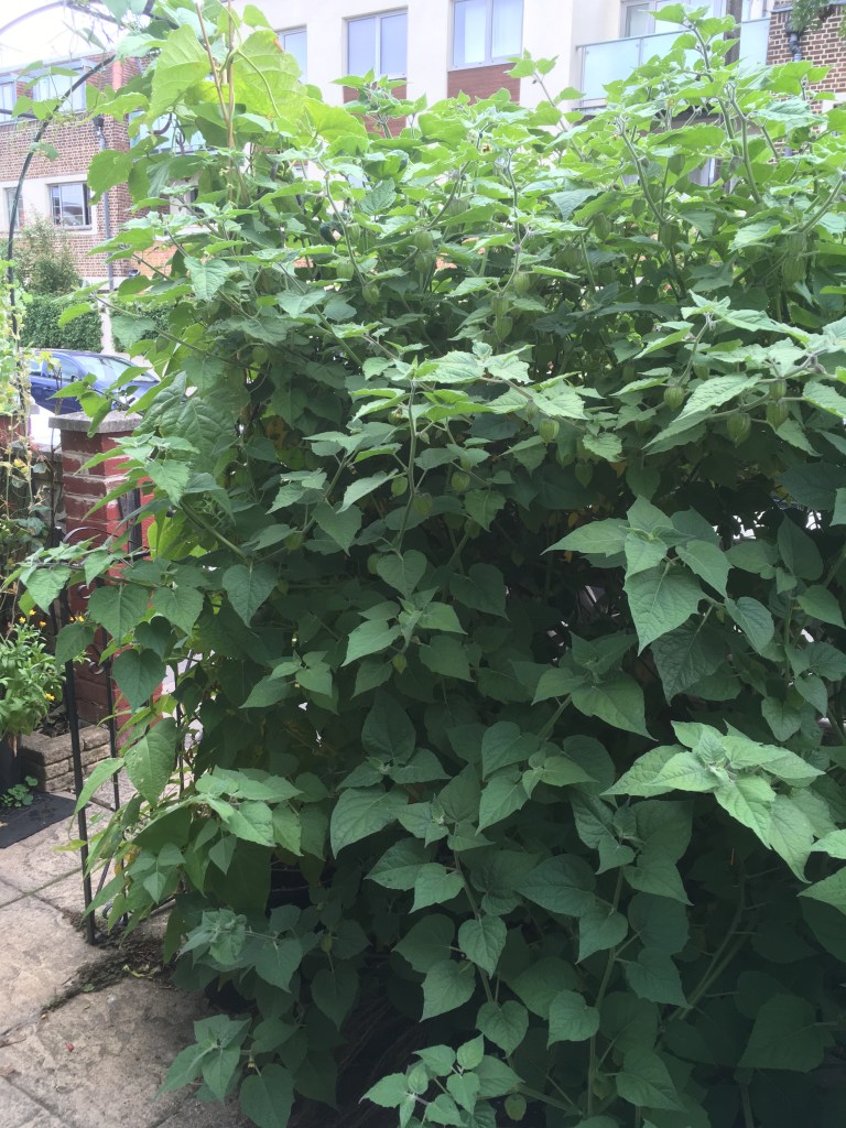 Three cornered leek – It is illegal to plant it in public spaces because of what a nuisance it can become. Therefore, I was very careful with planting it in a border surrounded by walls and flagstones where it wouldn’t escape. I also planted it sparsely. It has self-seeded and spread very well. I have also grown it in the very shadiest spot, under the physalis bush. There’s enough for a couple of meals but hopefully next year this space will be totally full, and I can harvest it into submission. I do wonder if it would make a good winter substitute for grass. The only reason I haven’t (yet) is that in the summer it dies back completely so we would have a lot of bare earth that cats would just poo on. Click for more info.