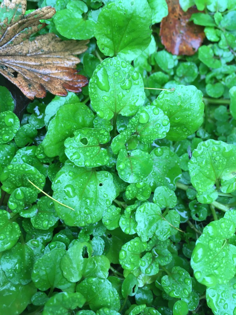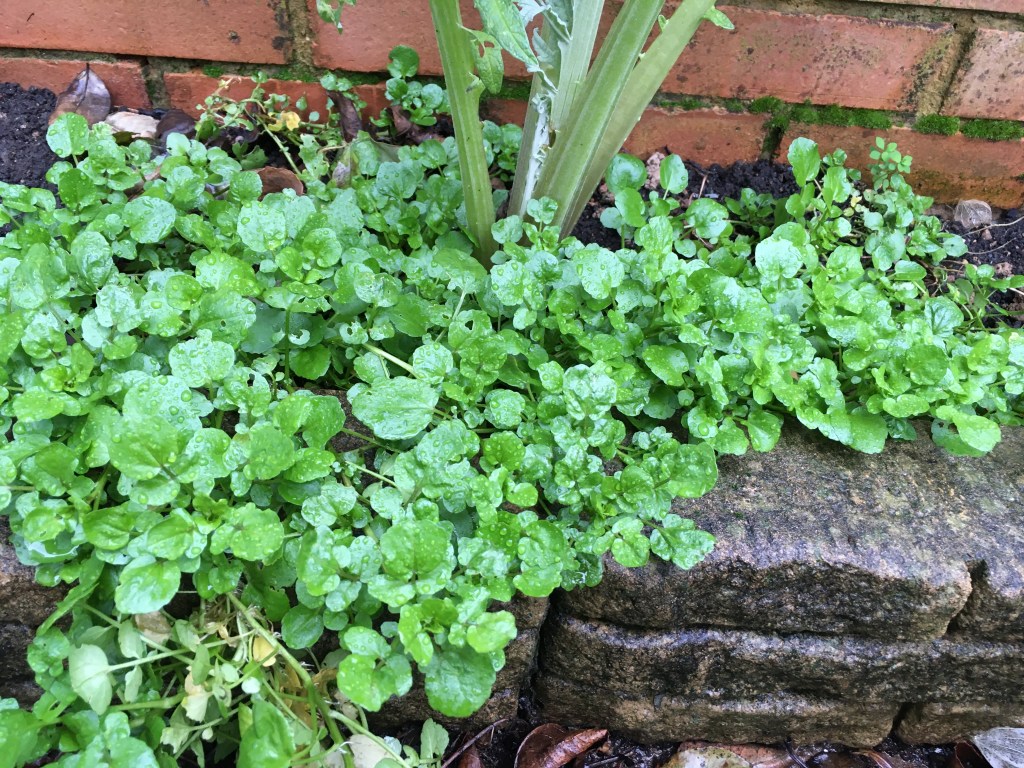 • Watercress makes a good creeping ground cover. It creates new plants wherever the stems touch the soil. Great in salads or makes a lovely soup. It does need more sun than ground elder but, contrary to its name, it doesn’t need to be grown in water. It does grow all year round (here England) when the winter isn’t too harsh.