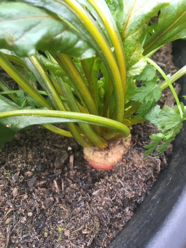 Beetroots – we grow golden beetroots as they’re sweeter. Little one will only eat the yellow ones. We only have about 3 left in the garden. We should have planned better and sown more.