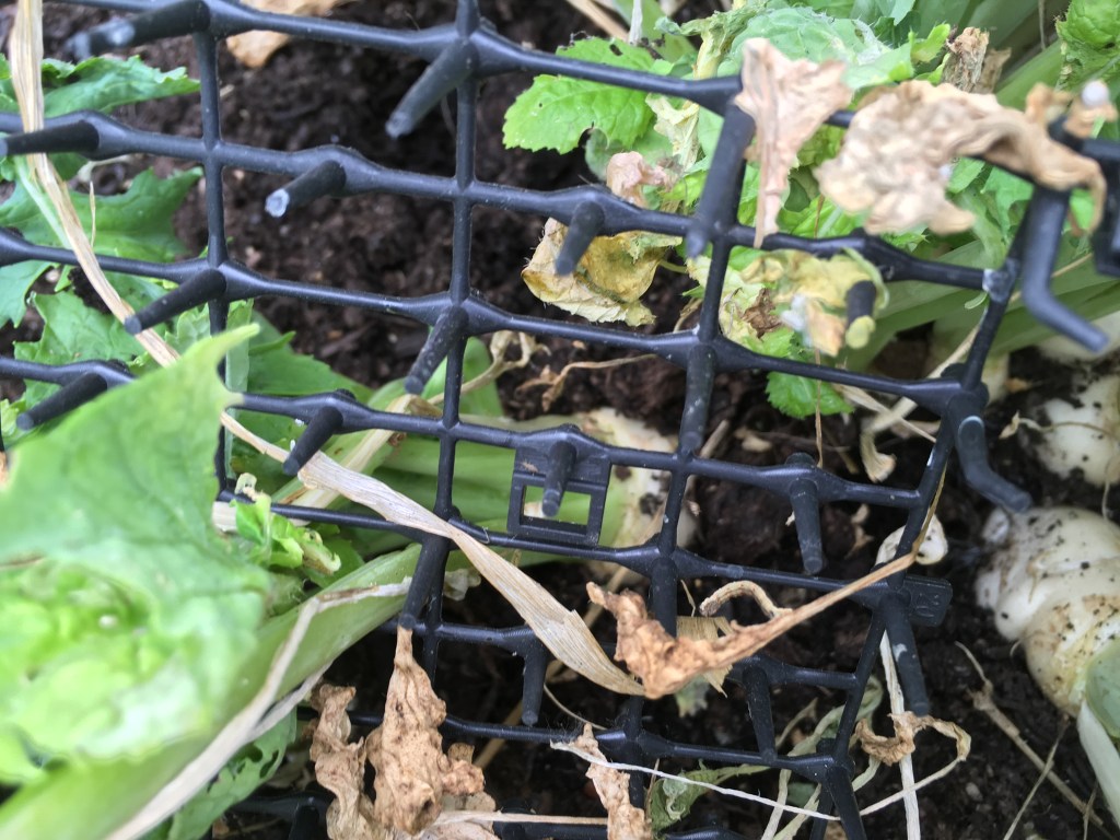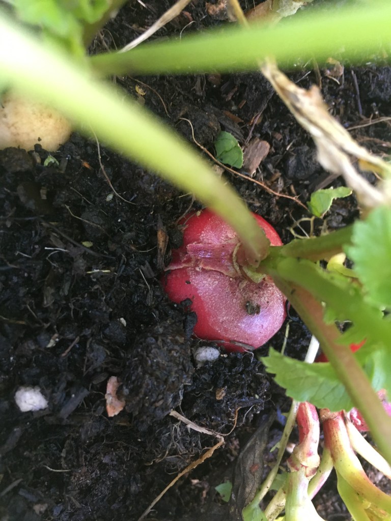 Radishes – generally grow quickly in warm weather, they need about 2 months to mature in late autumn. They haven’t grown much in the past month though. We also grow these for the greens overwinter. Click for more info.
