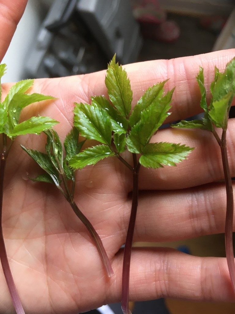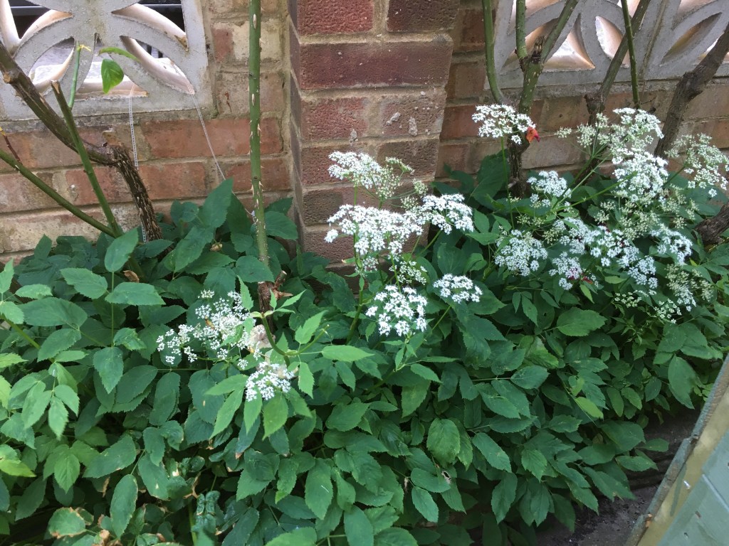 I also found out when researching it that it is edible. It is actually not bad. It tastes a bit like parsley and if you pick the young leaves before they flower they can be very tender. It has some rather attractive white flowers in clusters that look like elder flowers (despite not being related), which is where it gets its name. Once it flowers it doesn’t taste as good and gets a bit papery. It is a tenacious perennial vegetable that grows well in shade where many other things don’t. It self-propagates freely using underground runners. So, if controlling this ground elder is destroying your soul you could try eating it into submission. If you have a shady garden that doesn’t grow anything you may find that this could be a vegetable that works for you. I have read that it was introduced by the Romans as food. However, be REALLY sure you REALLY want it before you introduce it and make sure it is enclosed within a barrier that is impermeable to the roots.