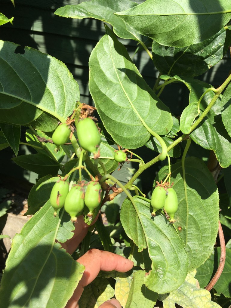 Chinese artichoke – these are harder to harvest as they grow very deep down into the soil and are fairly small. It’s fun for the little one to dig and spot them though. This does mean that you are likely to have left tubers behind, so they’ll grow back easily the following year. The tubers look like tiny Michelin men and are very fiddly to clean. They have thin skin that doesn’t need peeling. Raw they taste and feel like waterchestnuts with a hint of mild radish. Cooked they are more like taro in taste and texture. Fiddly, but fun. Click for more info.