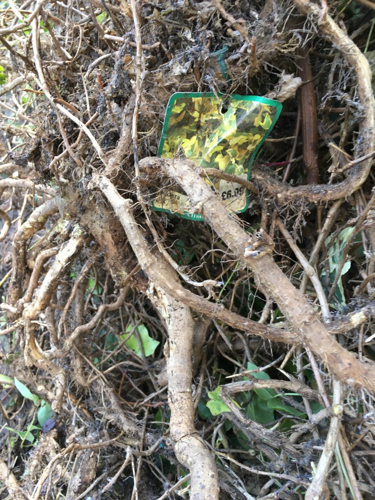 In one garden I had proof the ivy was planted intentionally, not by the current occupier but by a previous one. At the base of an absolutely massive ivy triffid I found a garden centre label. This bush had completely taken over the wooden fence and attached itself onto some trellising above and dug its little roots into the wood of everything damaging it. The weight of the ivy plus the weakening caused by the roots had caused this fence to bend and then the trellis attached to topple. The neighbour there also said that it had invaded her garden and she had been battling it for years.