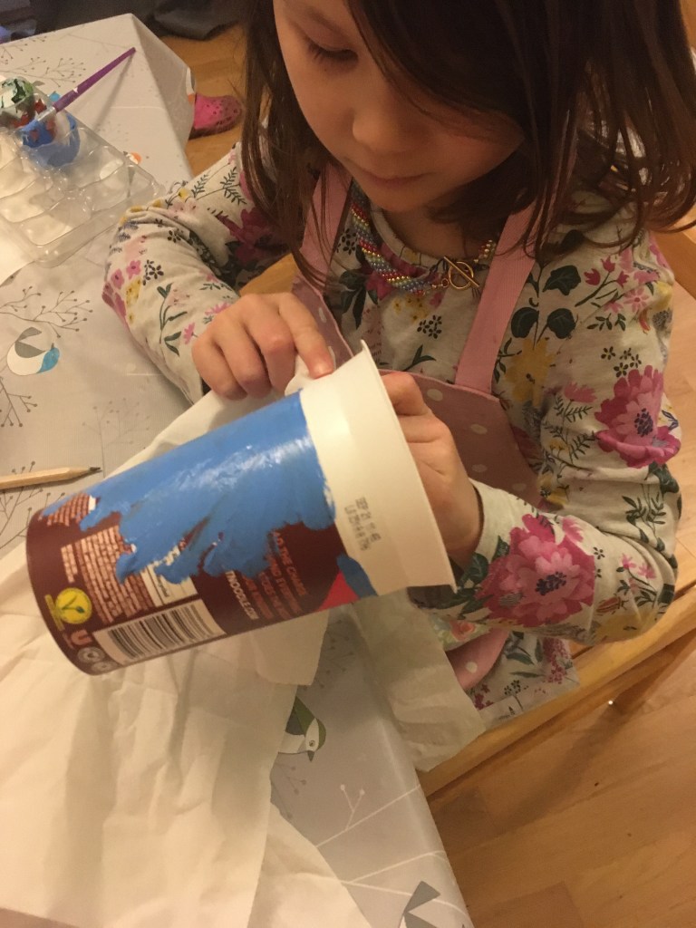 As we are currently in the joyous throes of COVID home-schooling it’s worth nothing that getting her involved in things like this ticks lots of boxes. She gets to exercise her imagination, she practises fine motor control as she draws, paints and sticks and of course she’s learning a little about sustainability. It’s also an almost zero cost activity (depending on what kind of things you have around the house) and involves no screen time.