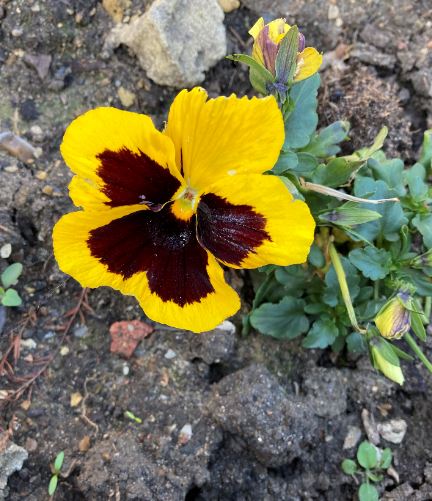 I have often seen the names pansy and violet used interchangeably. All of them have the distinctive overlapping two upper petals, two side petals and a bottom petal. The traditional pansy with a larger flower and blotches on the petals as opposed to lines tend to be grown more as annuals. Many of the pansy varieties have been bred to grow and bloom over winter.