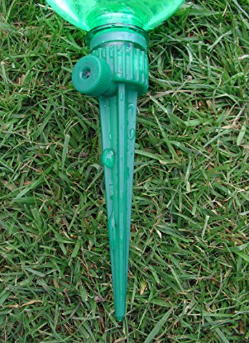 The stream is a little strong though, unless you can make a ridiculously smal hole. The bottle empties within 48 hours so the bottle drippers can be more effective. We rarely use these now as we have almost everything hooked up to another water source. You do also need to secure the bottle with a cane or stake of some sorts.