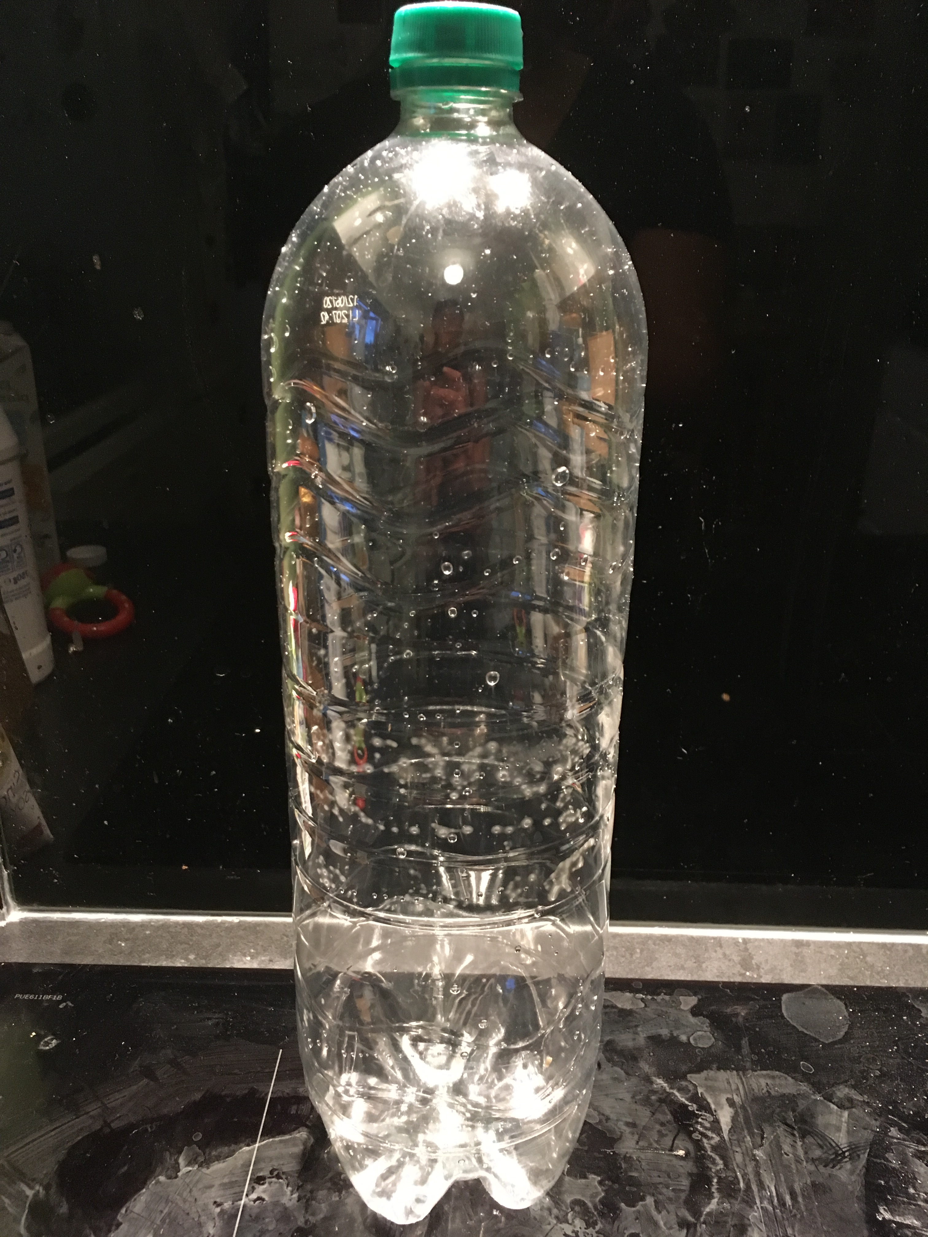 If you want to drip feed your soil you can buy dripper stakes that screw onto the tops of bottles. It’s something we’ve had in the past for when we’ve been away in the summer, but I’ve lost in the previous house move. We used to use these a lot as all of our plants were in pots which dry out quickly. They were really quite effective if you can get the drip slow enough. They basically screw onto typical plastic bottles. You start with a clean empty bottle, generally bigger is better as it lasts longer. You take a heated pin and pierce the bottom of the bottle with a tiny hole. You then fill the bottle, screw the dripper on and then drive the stake into the soil by your plant.