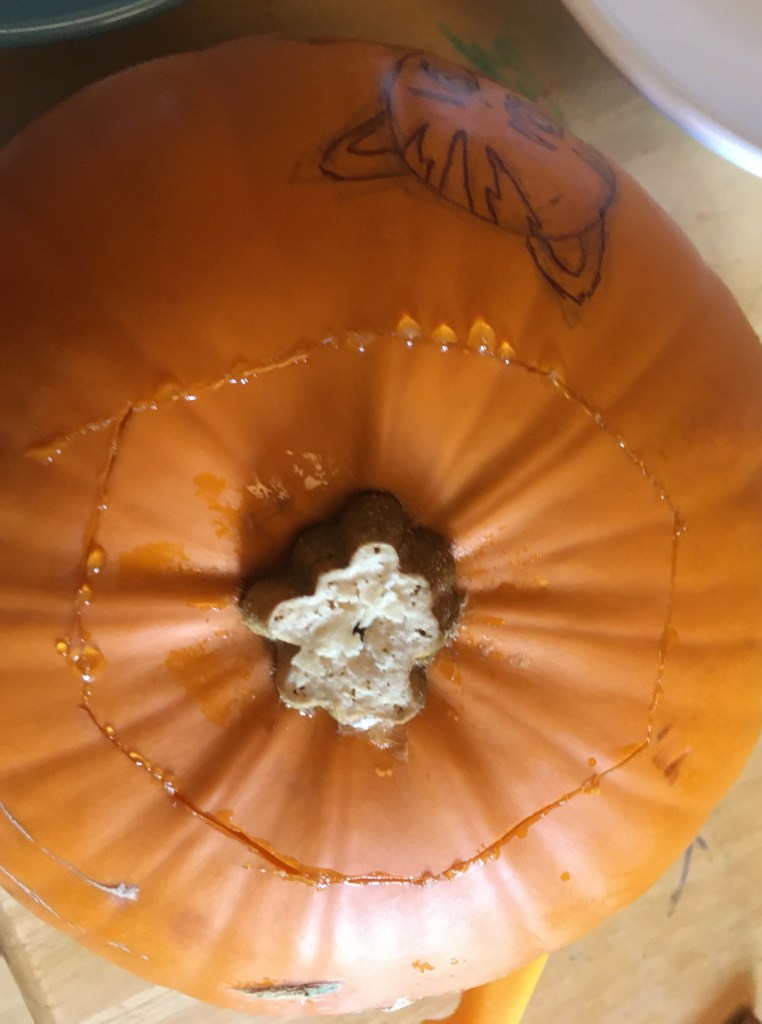 I like to carve pumpkins. You can get different shades if you don’t go all the way through. The deeper you go the lighter the tone will be. I used a Thai fruit and vegetable carving knife. ‘Carving’ pumpkins are usually bland and watery.