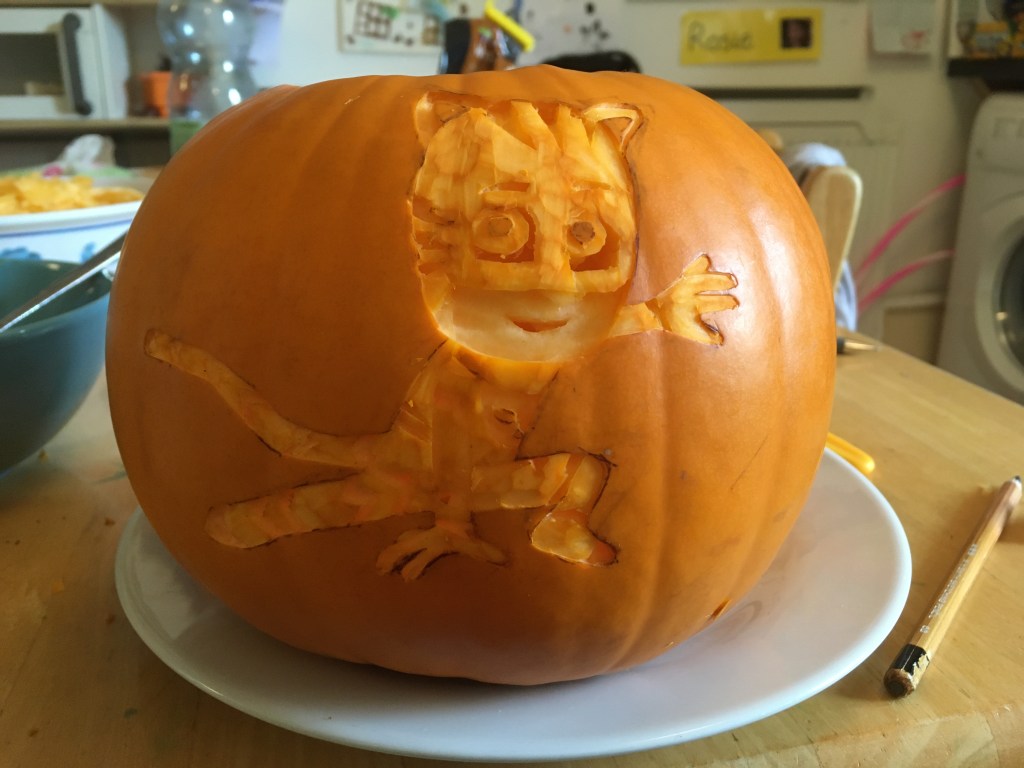 Every year I get really excited about carving a pumpkin for Halloween. I’m afraid I can’t grow a pumpkin for carving. Not because they don’t grow – but if I go through the effort of growing a pumpkin then I am blimmin’ well going to eat it…. All. That’s the problem. If you carve a pumpkin you will be sacrificing a shell of at least 1cm thick in order to maintain structural integrity. I just can’t bear to do it. Pumpkins in the shops cost around £1 so it’s a no brainer. They are also not grown for taste, though I put this to the test almost every year.