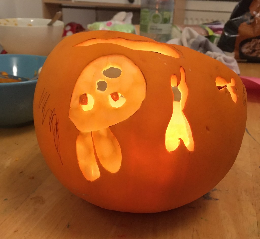 This morning I looked again and a cat had pooed in the bunny head pumpkin. *sigh.