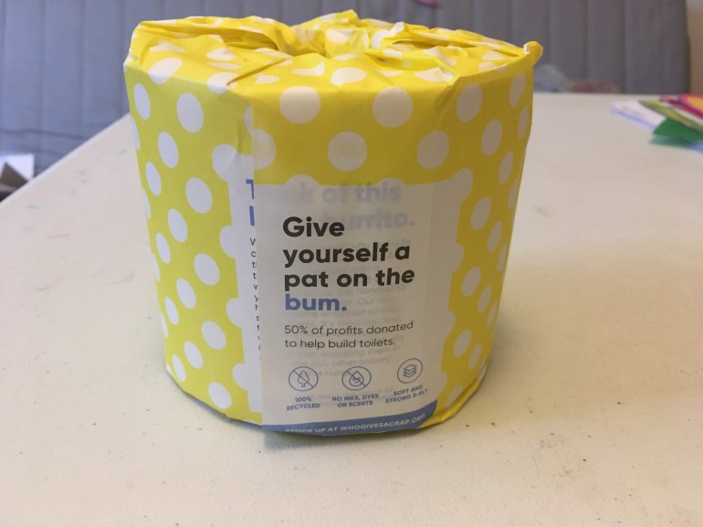- Who gives a crap? is a company that sells recycled loo and kitchen roll that comes in paper and cardboard packaging.