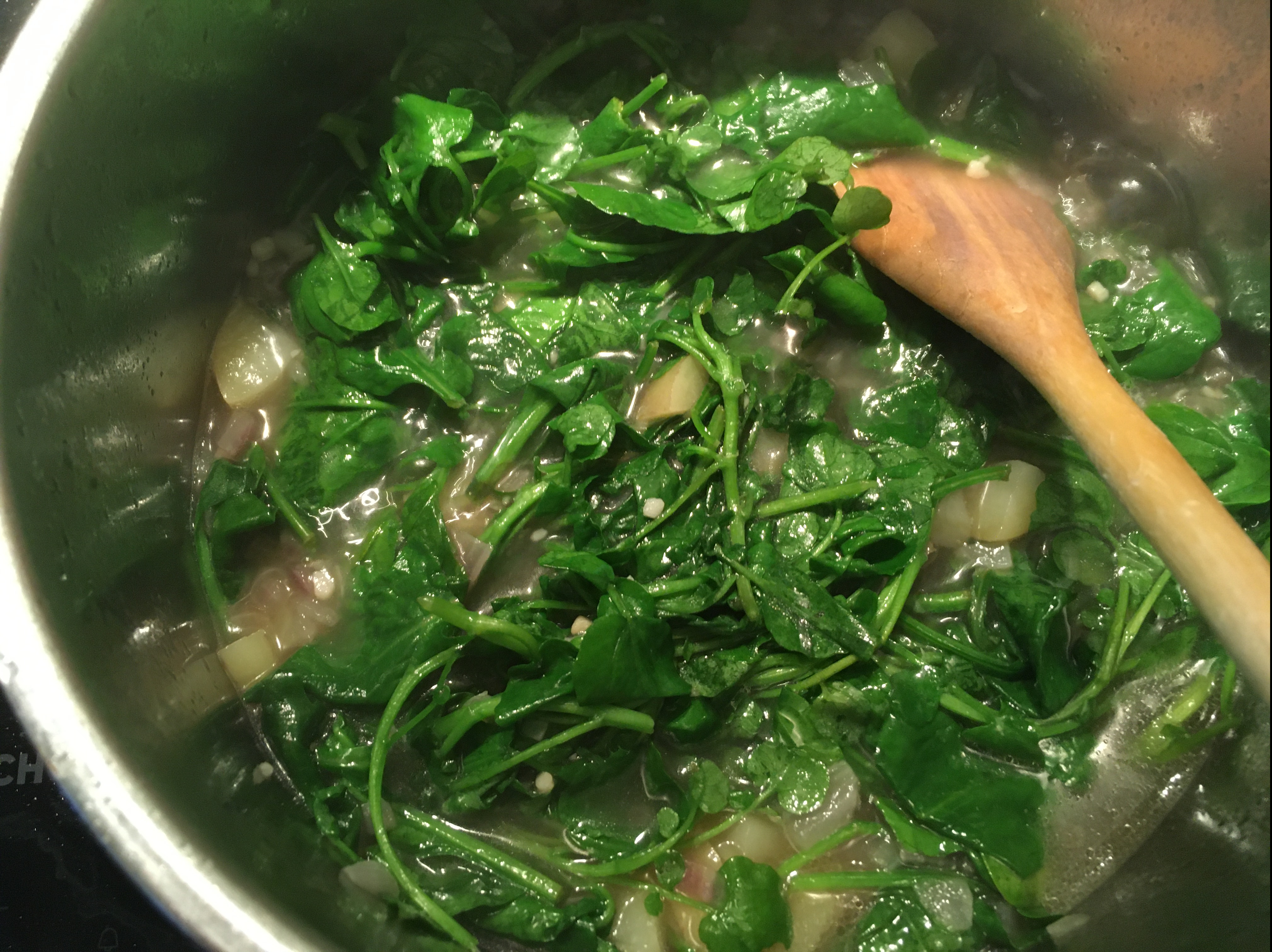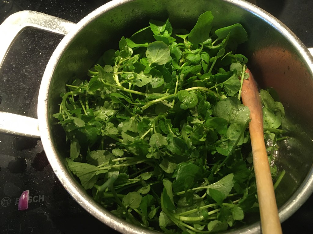 I find that everyone is happier if they are blanched or added to soups. You can make a yummy (and very green) soup from watercress. I’m rubbish at following recipes so I won’t give you a proper one but you basically: