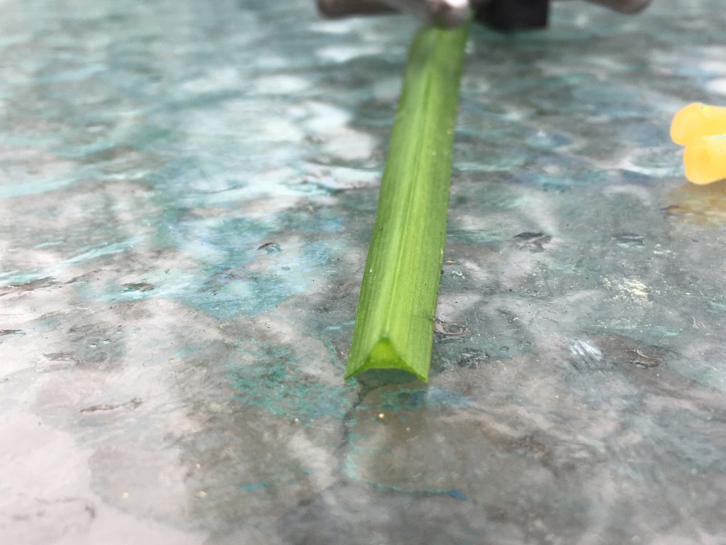 I first saw the three cornered leek (allium triquetrum), also called three cornered garlic, in a foraging book and then came across it in a friend’s garden. Not knowing what it was, she despised the stuff. She said it was garlicky, but she had not identified it so hadn’t been eating it. I could see why she didn’t like it. It had completely invaded her lawn from where it appeared to have begun in a border. After a mowing it would be hard to visually distinguish from the grass. I begged her for some for my garden and she was happy to give me as much as I wanted, as long as I was prepared to dig it up myself. I wasn’t prepared, but I was totally willing. I ended up digging it out with a soup spoon. There may have been some choice words I would not repeat to my 4 year old directed at the particularly deep bulbs.