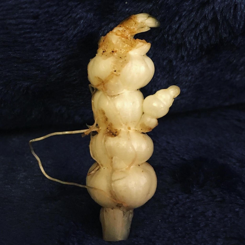 Crowns are the roots from a year old plant. If you are adding the well composted manure in the spring then you make a mound in the trench after you’ve added your 5-10cm of soil back. If you went the composting kitchen waste route the dig a hole about 15cm deep and then make a mound in the middle. Spread the roots of the crown over the mount like hair on a head, with the growing shoot buds facing up. Cover with soil leaving the bud tips just about visible. Water in to remove any air spaces in the soil.