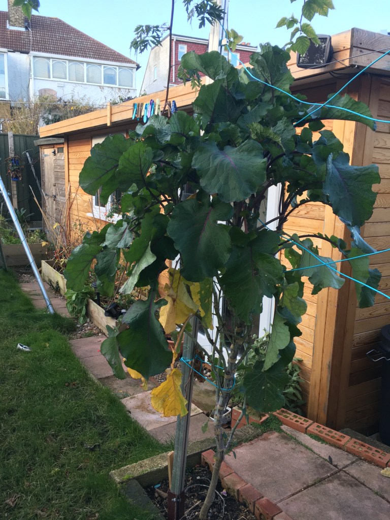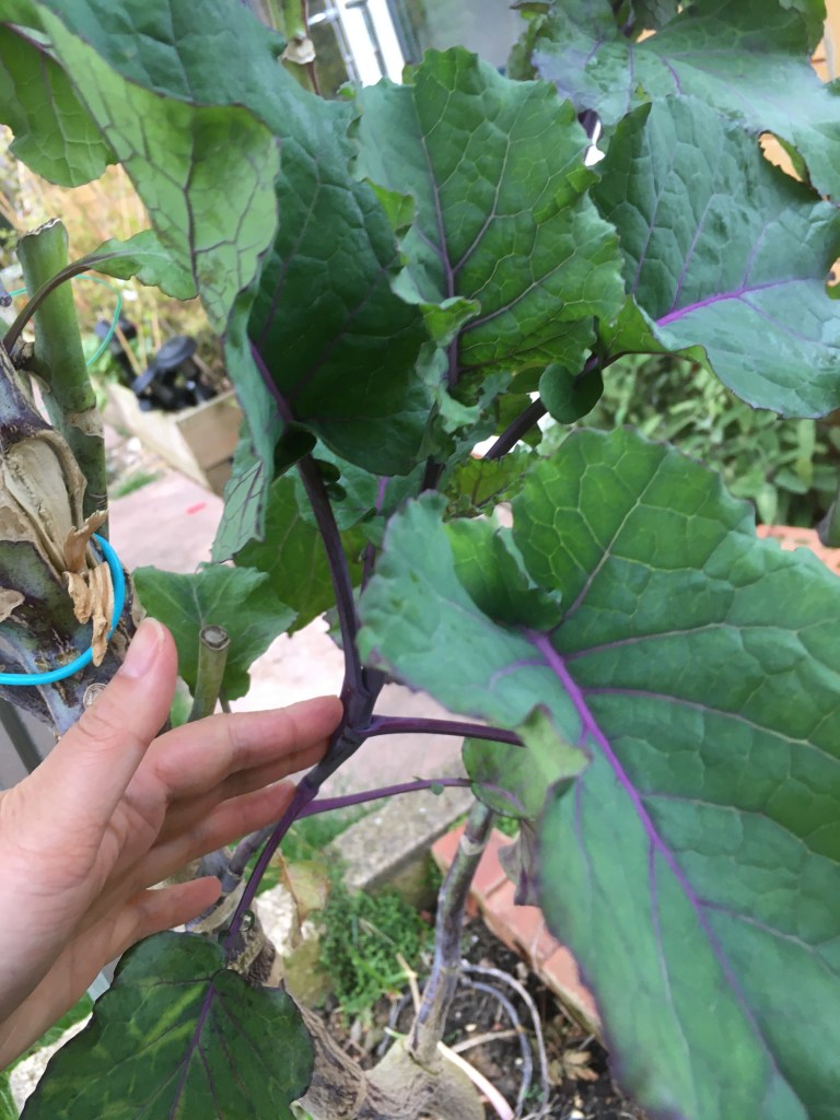I only added this bit because one of the best things about this plant is that I have never seen any pests on it. It seems to be untroubled by my usual brassica diseases like powdery mildew. It grows like a weed and doesn’t need any tending at all. It’s true that I have only had it for 2 1/2 years but in that time after the original sowing and then planting out all I’ve done is harvest and eat.