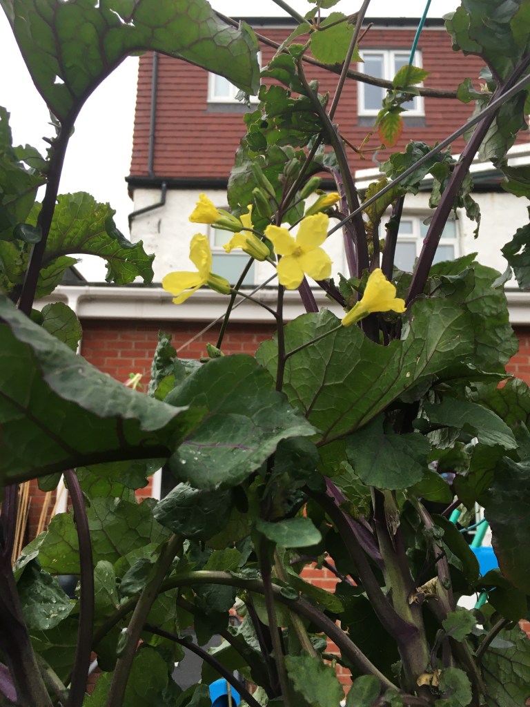 Most of the leaves are in a rosette around the base. The flower stalks can extend up to around 80 cm tall. If left to flower you get yellow flowers with the four petals typical of brassicas.