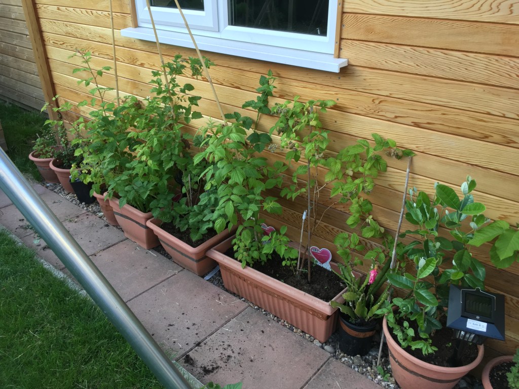 In 2011, with the blackcurrant I bought a raspberry. It didn’t survive. On a whim in 2018 I tried again with a pound shop malling jewel. I looked it up and it’s a sweet variety. Avoid anything that says tart or acidic in the description, unless you’re fond of sour. Often raspberry descriptions that don’t specifically say sweet -will not be sweet. Full of flavour does not equate sweet. It’s a marketing ploy. It was of course a tiddly little stick, like the blackcurrant and didn’t amount to much in the first year. In 2019 though there were maybe 10 raspberries on it. Hopefully 2020 will be its year to flourish.