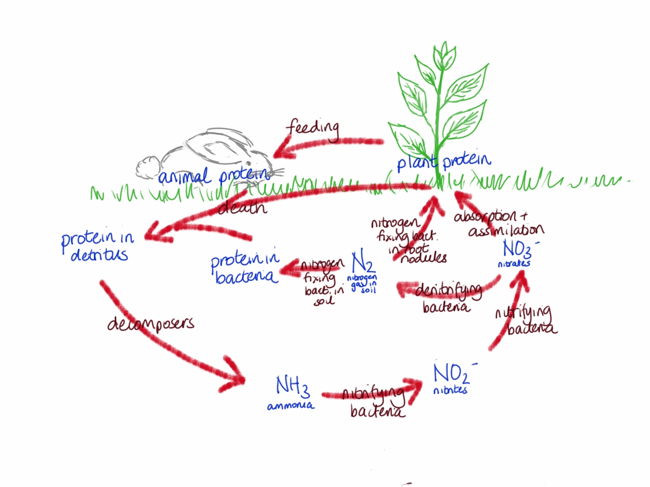 You can look at the nitrogen cycle and see how this single nutrient moves from the soil, to plants, to animals (sometimes) and back to the soil again in an endless cycle.