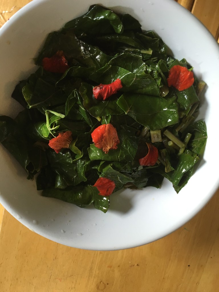 A light stir frying of the nasturtium leaves takes away much of the pepperiness and leaves a pleasant taste that I’ve not found anywhere else. Again, the husband will accept this but not the child. She will, however, eat nasturtium leaf crisps. You can make them like kale crisps. Spray lightly with oil and oven bake in single layers for a few minutes on a medium heat. Alternatively, a hot, non-stick frying pan with oil will crisp up leaves very quickly but the leaves must be done a few at a time in a single layer. You can imagine I don’t do this often as it’s a bit too much work for someone who wants to eat out of the garden lazily and easily. Also, I suspect all the oil and heat makes it all much less nutritious and healthy.