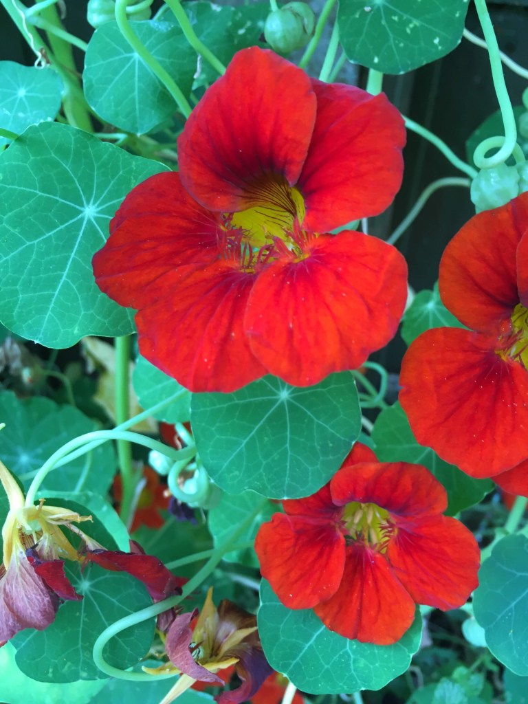 In addition to the happy self-seeding, nasturtiums grow well in poor soil. This means that they will grow readily in soil that is not fertile enough to grow vegetables. This doesn’t mean that you need to deliberately seek out rubbish soil. If the soil is fertile you will just get more leaves, which isn’t a problem as you can eat them.