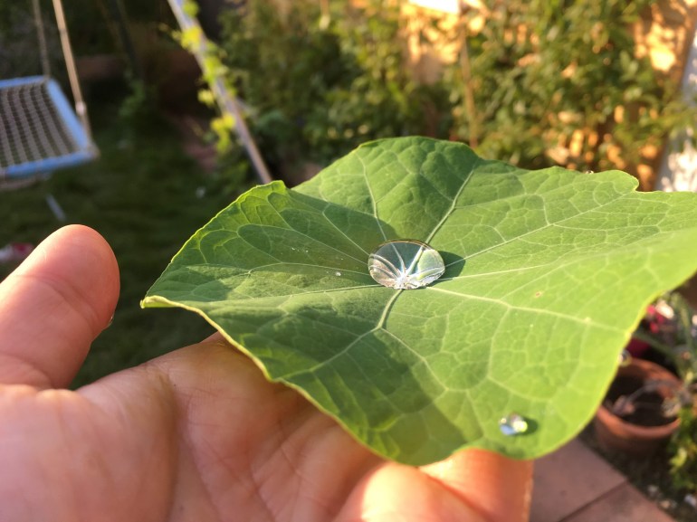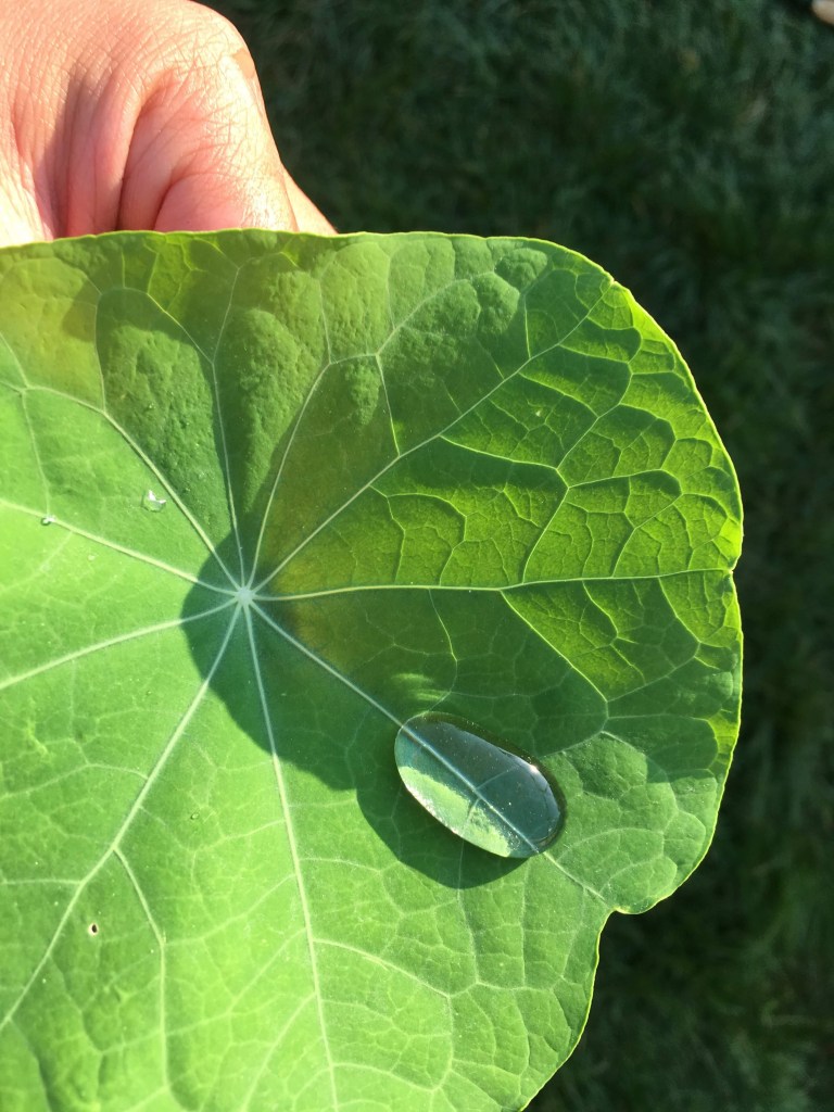 The seeds are nice and large, so they’re easy for kids to handle. They germinate quickly so little ones don’t have to wait so long. The leaves are also hydrophobic, as in, they repel water. They make a fascinating plant to play with and then of course they’re pretty to look at and edible later.