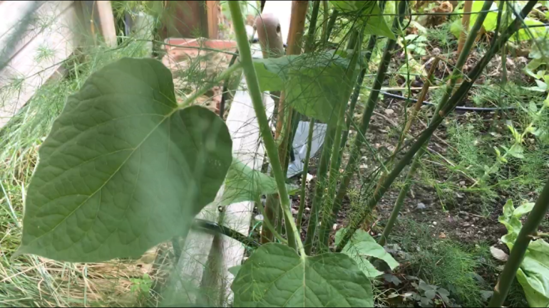 The pear tree is now taller. It couldn’t be espalier or fan trained due to the 5 different varieties. Instead it gets tied to this frame. It still allows sun to reach it and stops the tree from invading the neighbour’s side. It also stops the branches from extending too far into our own garden.