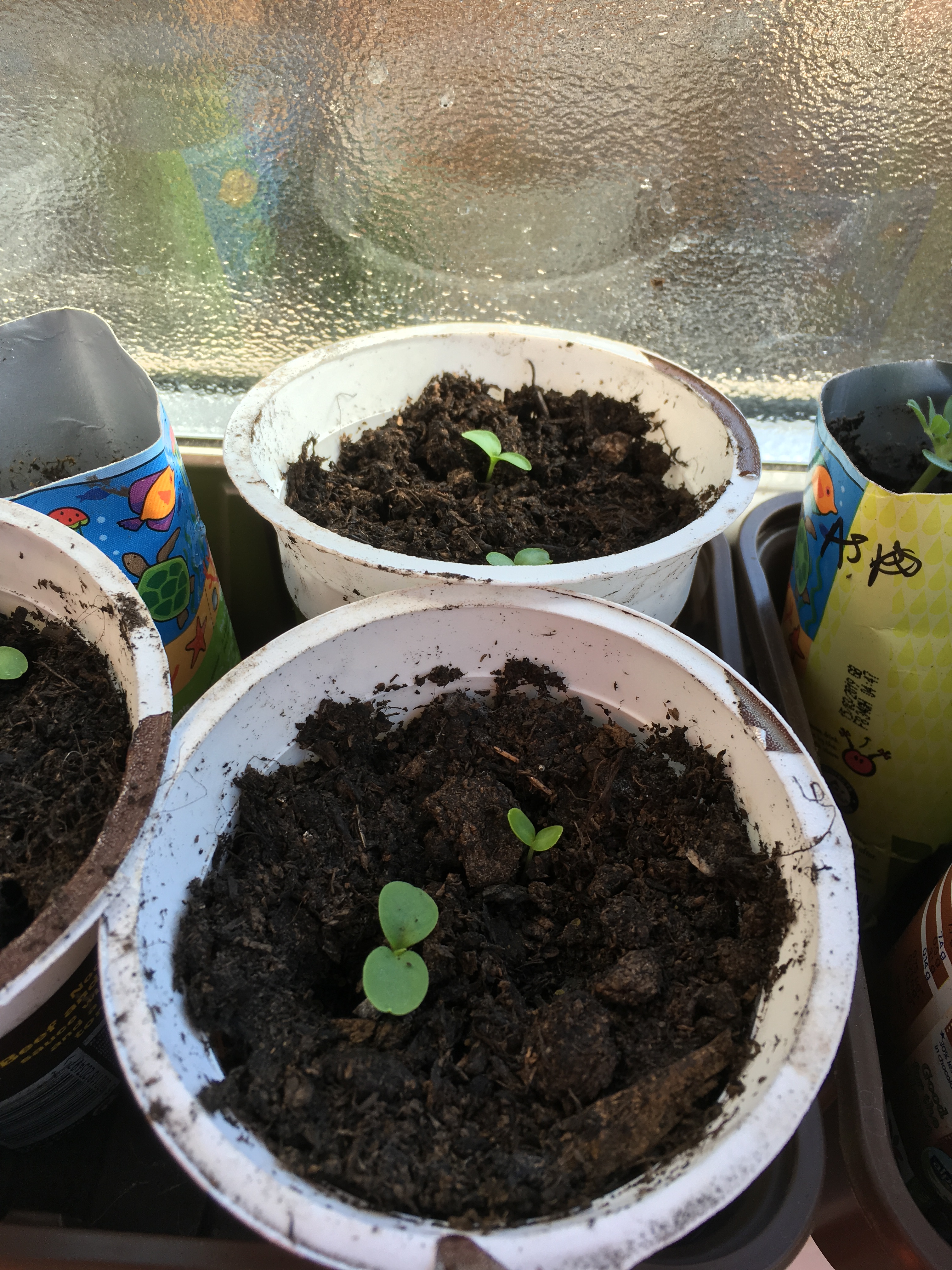 Windowsills or any sunny spots will do. Keep the soil damp. Some seeds germinate almost immediately whilst some take a little longer. There may be containers that continue to look barren. Not all seeds within a pack are viable. Some plants are just harder. I’ve failed to germinate perilla, tomatillo and pomegranate this year. Following instructions to the letter may have led to success. Then again, it may not have. If you think something hasn’t grown pop something else into these pots. Because I like to keep it easy, cheap and avoid anything too time consuming I give up on the harder to grow things. There will be some things that are better (though more expensive) bought as plants.