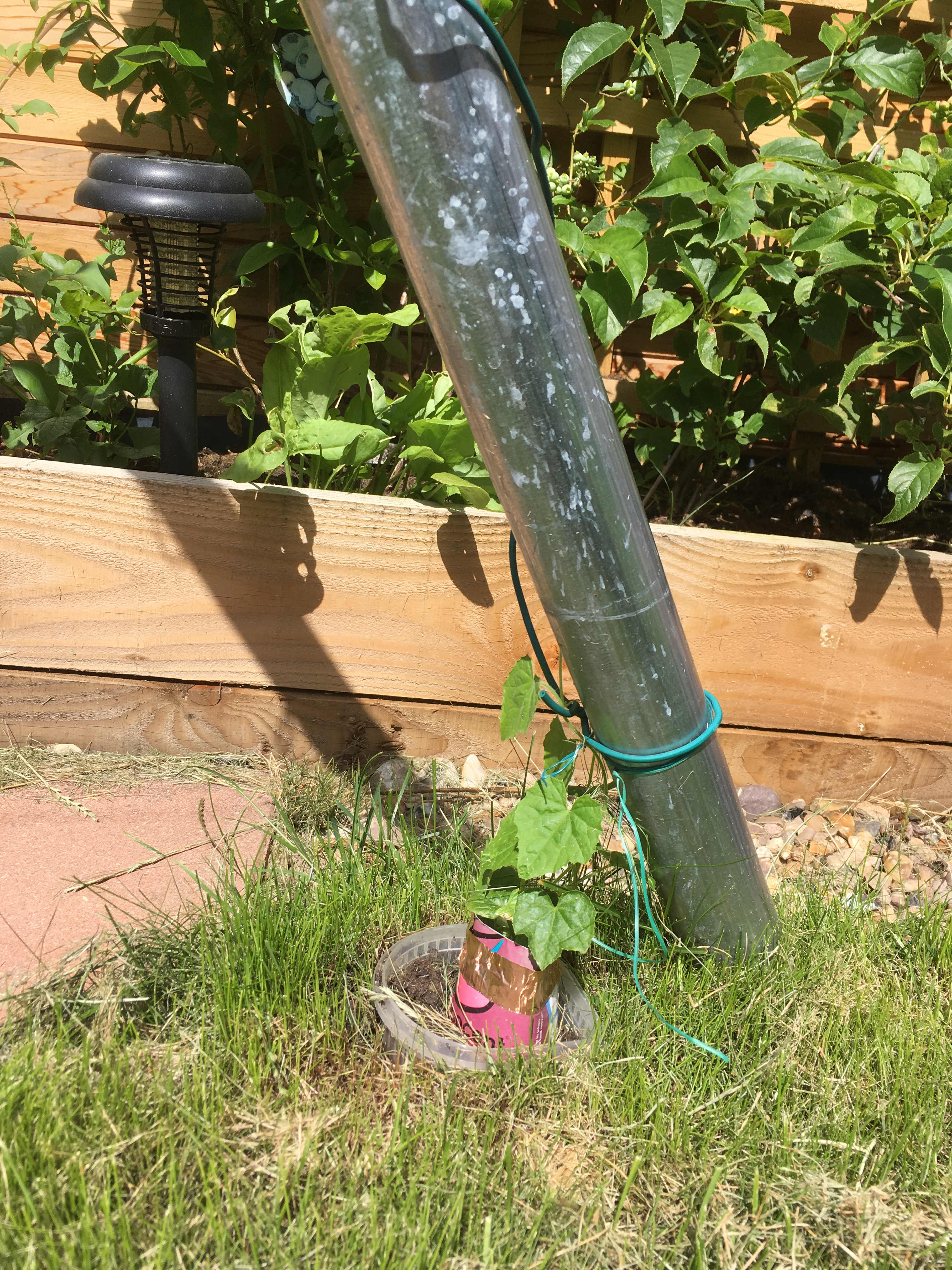 It’s worth keeping bits of wood whenever you have DIY projects as they often prove useful in the garden later on. I used some to hold together a pallet planter and mount a baby gate that became a squash climbing frame.