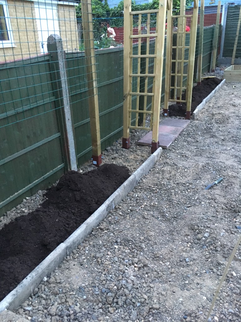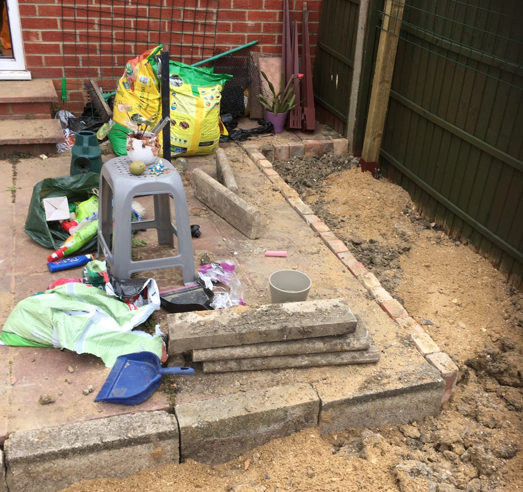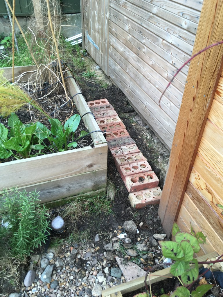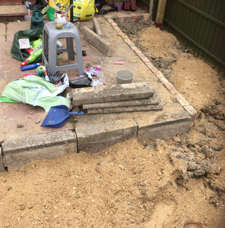 Edging on the other side and flagstones relaid as a path and at the end (top right) as a base for the shed