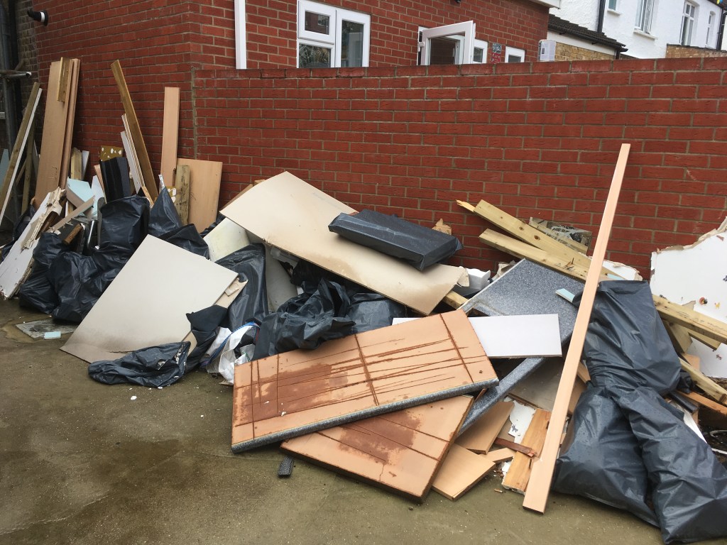 Short version: (Part 1) Please see here for recycling and repurposing household stuff. (Part 2) If you have huge garden project that has heavy materials a skip and a good wheelbarrow (and maybe some helpful friends) is the most cost-effective way. A company can drop a skip off in your front garden or your kerbside (though be careful with parking restrictions) and then pick it up when full. For lighter, bulkier loads a waste management company is more expensive but requires less work on your part. For small loads you could try a ‘Hippo’ bag.