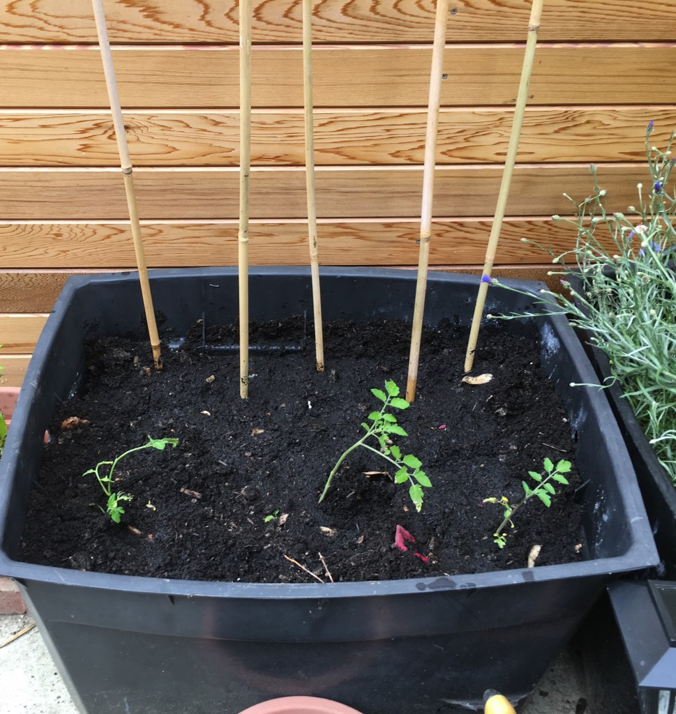 These two tomatoes at the base of the two canes were sown at the same time and planted out at the same time. The one on the left though had a tree collard that was too close. I removed it when I could see there was a problem but it still hasn’t recovered.