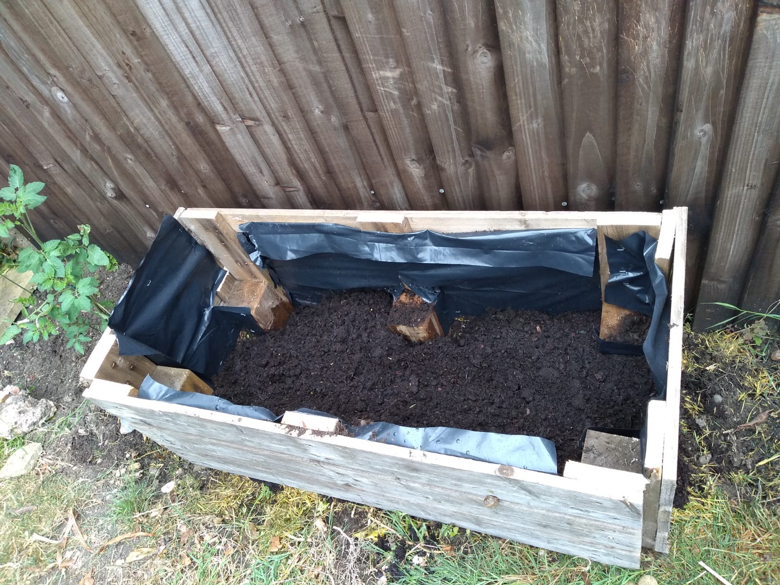 If you’re going through the effort of building a planter then you may as well provide the best start, especially if you’re using a planter as a raised bed because your soil (like mine) is pretty pants. We made this one as a raspberry bed and it was filled with shop-bought ericaceous (acidic) compost. I don’t have the right chemicals/products and am far too lazy to make pre-existing soil acidic enough to make raspberries happy.
