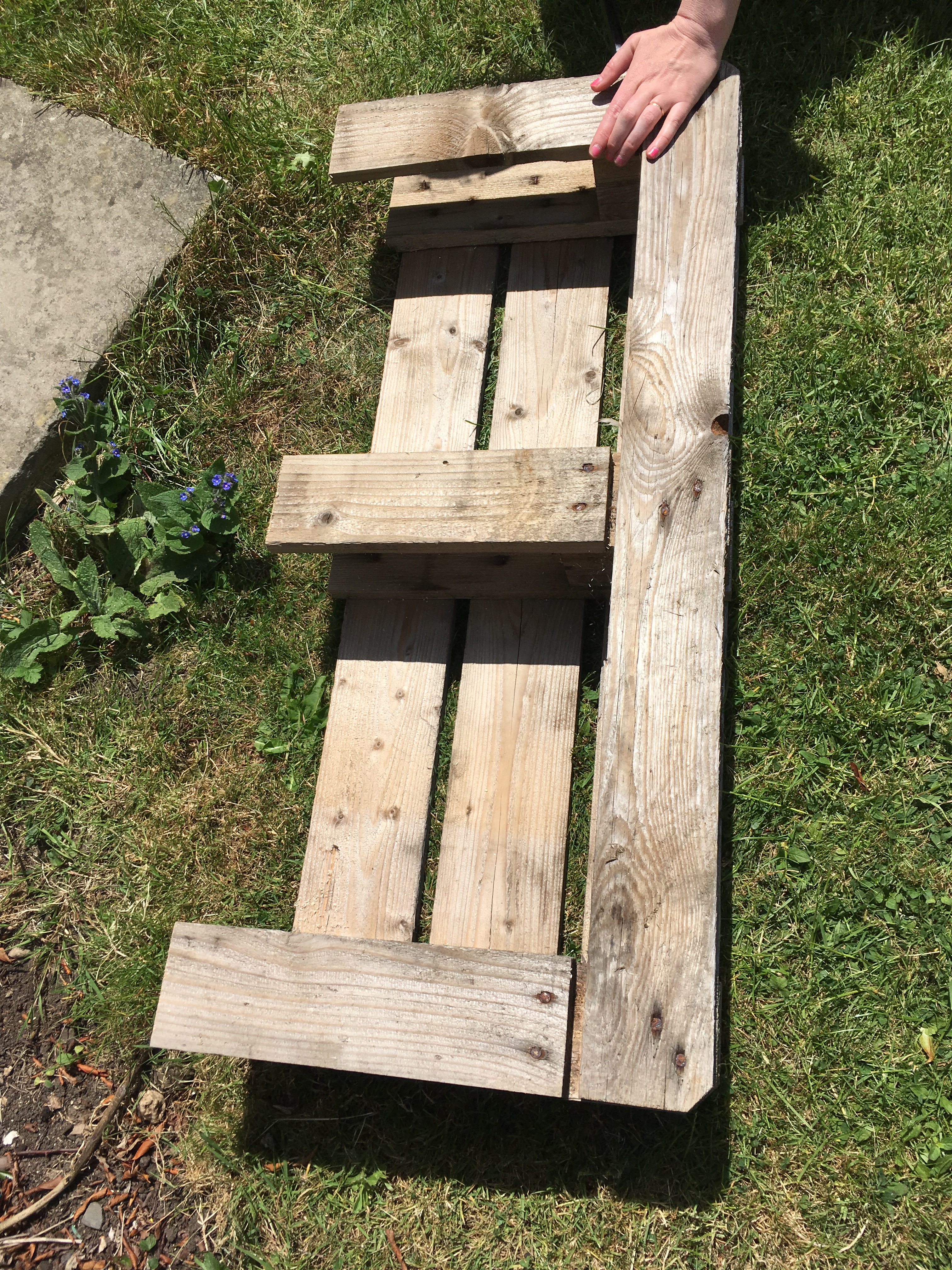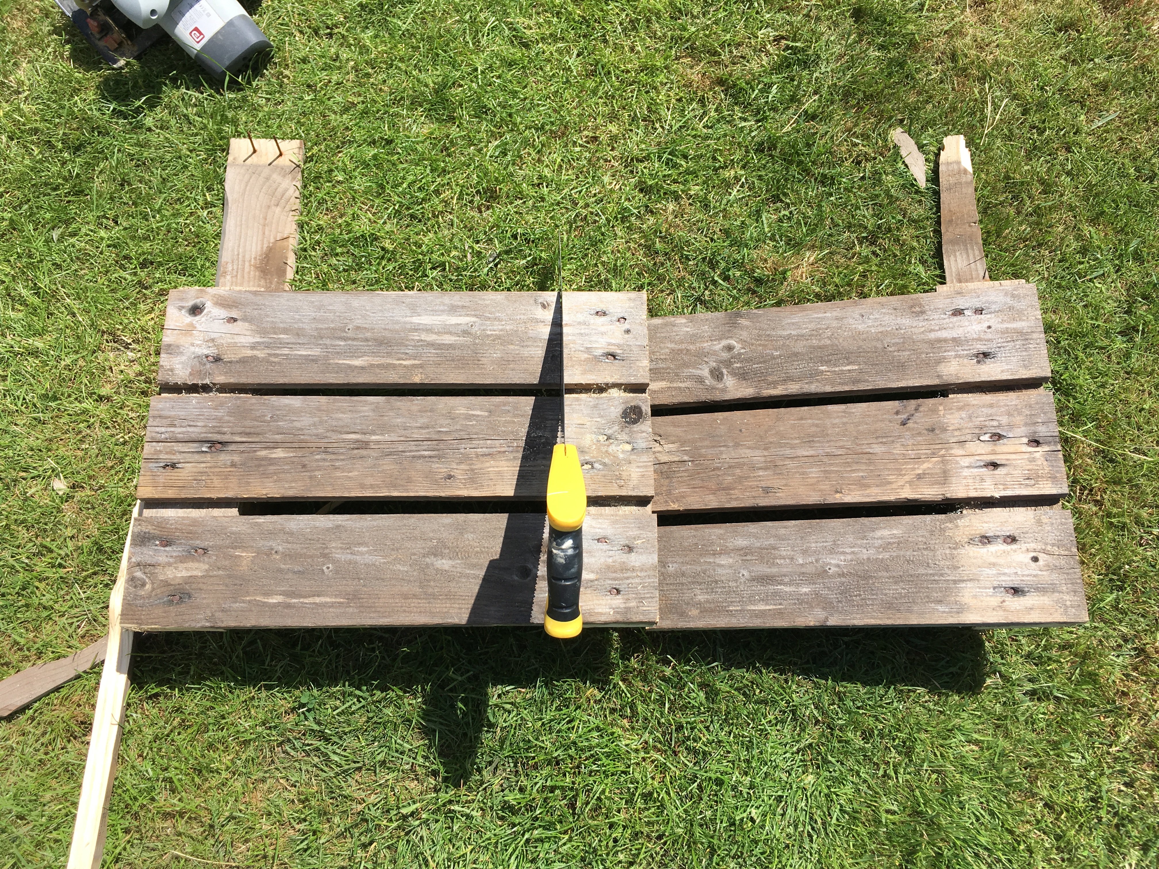 With this particular pallet there were 9 slats so it was perfect for cutting into 3 sections. The top and bottom thirds made the front and back and the middle section provided the two sides. It should go without saying, but please be extra careful here if you’re not used to DIY. If you’re using a circular saw, make sure you use eye protection.