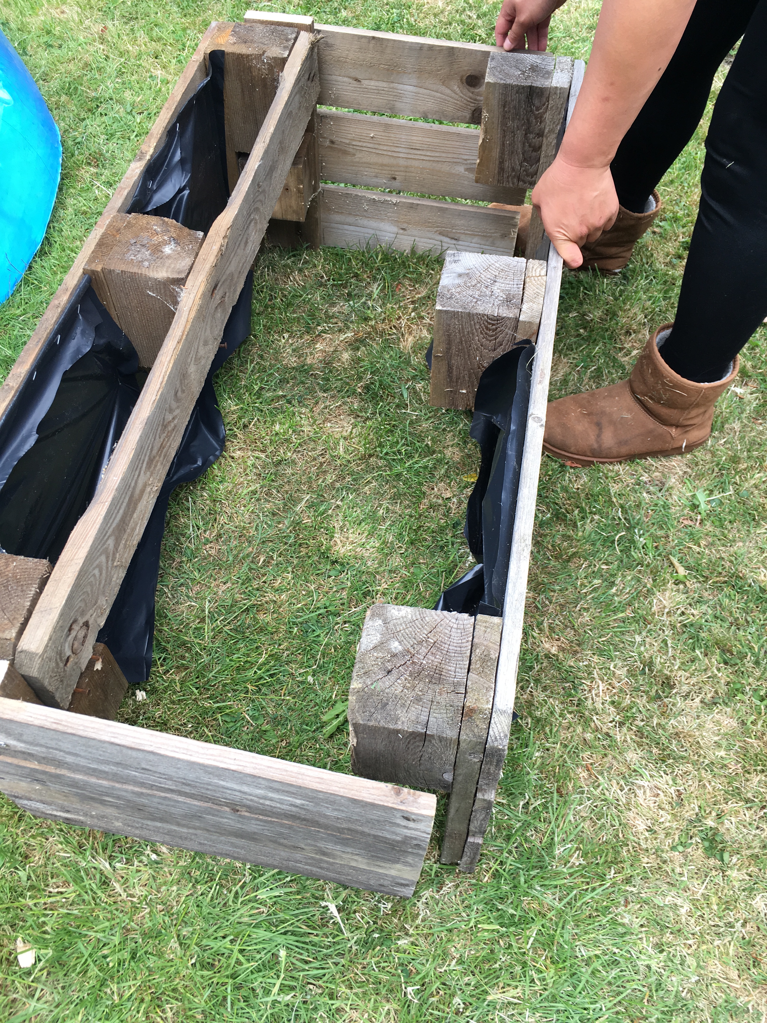 As we weren’t worried about the pallet and the slats were very close together, we just did it to protect the wood a little, so we didn’t ensure full coverage of the insides. Lining the pallet can be done at the end too, but it can be difficult to get a good angle with the staple gun.