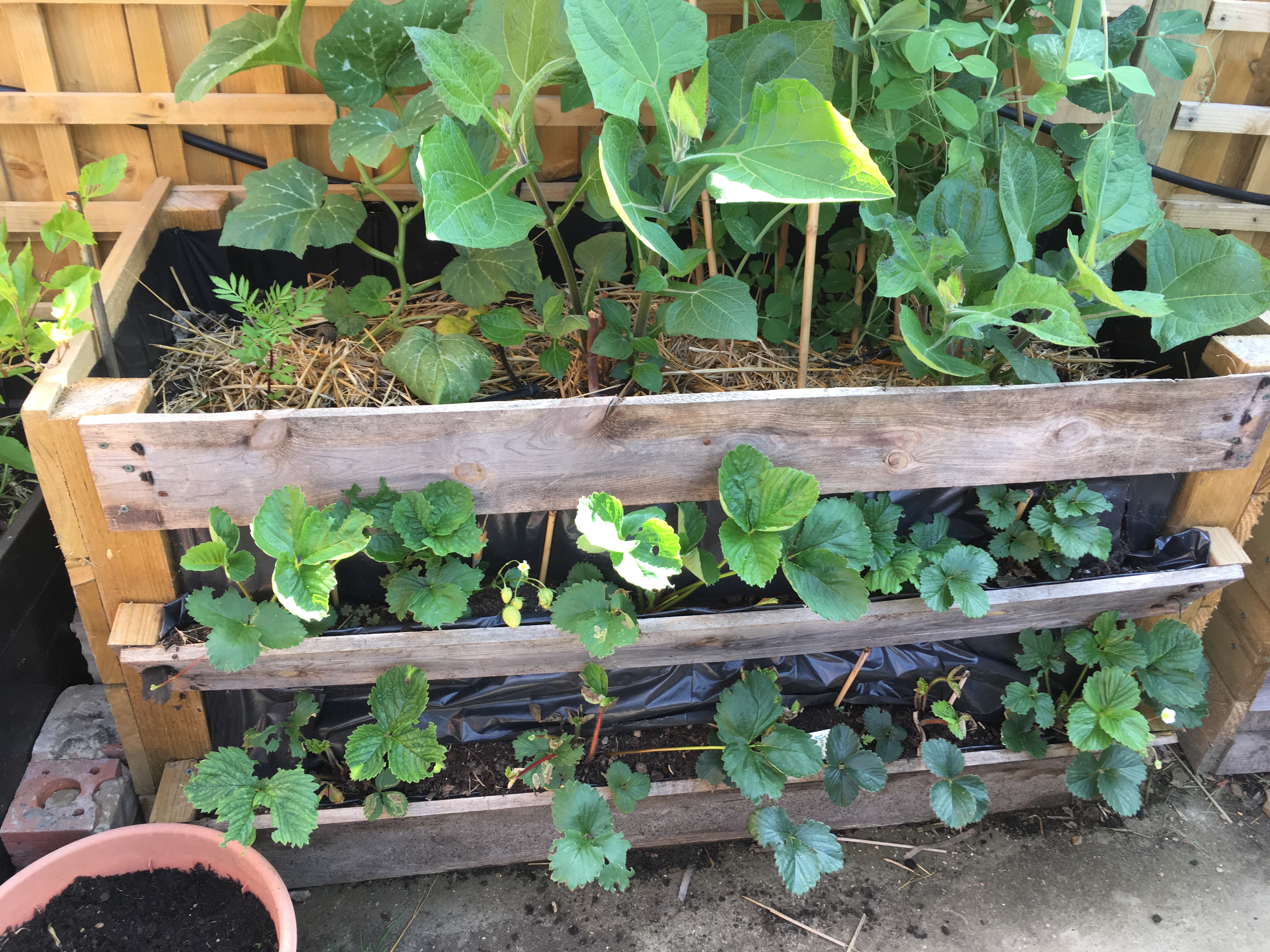 Another pallet after a year. The lettuce at the top had died and the plants in the first 2 rows couldn’t handle the hot summer.